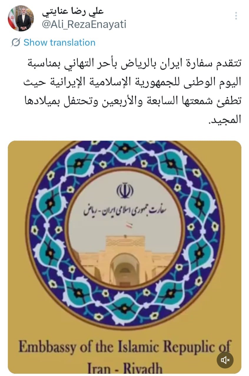 پیام سفیر جمهوری اسلامی ایران در عربستان بمناسبت فرارسیدن سالگرد پیروزی انقلاب اسلامی در شبکه ایکس
